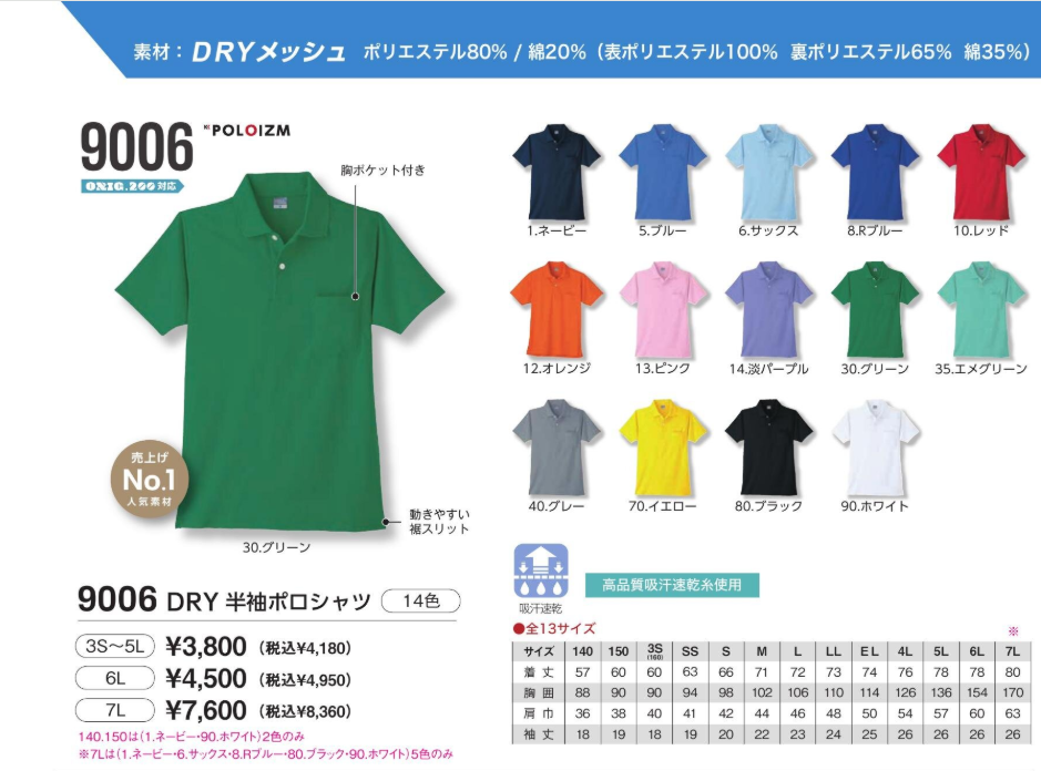 小倉屋のポロシャツは、SSから6Lまでといった圧倒的なサイズ展開を誇り、どのような体格のスタッフにもぴったりの一着が見つかります。